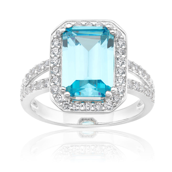 Sterling Silver Sky Blue Zirconia Emerald Cut Ring