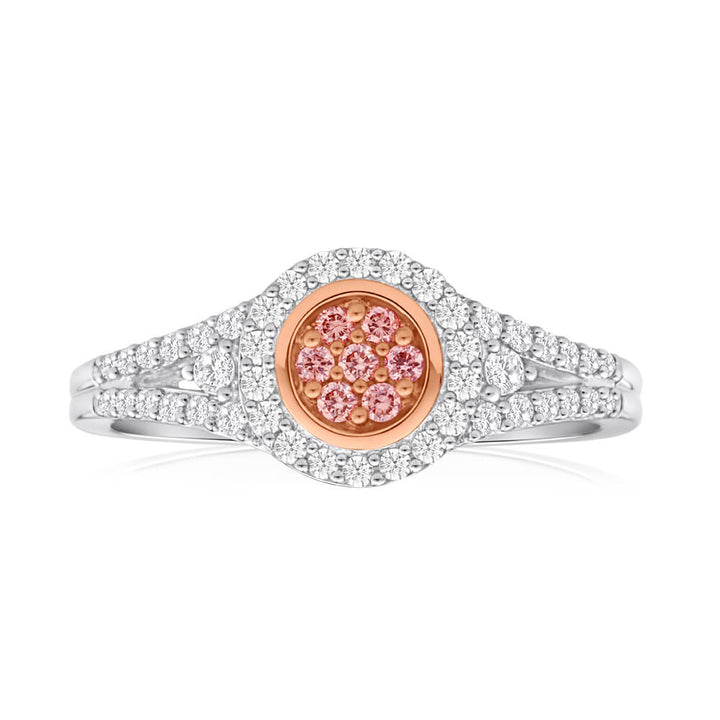 Pink Diamond 18ct White Gold Diamond Cluster Ring