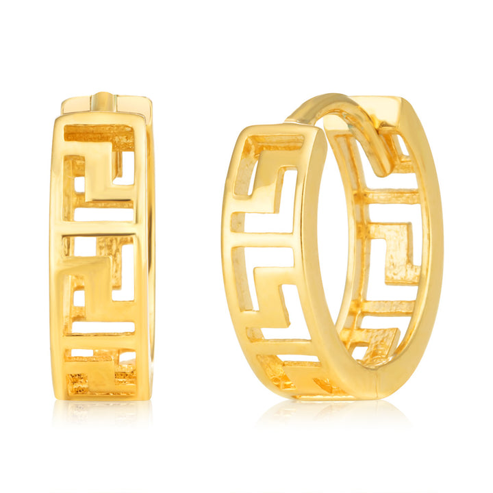 Huggie earrings are a great in-between piece for when you desire the timelessness of hoop earrings, but you are a little overwhelmed by their size or you have sensitive ears. Feel like a Greecian goddess in these finely-crafted gold huggie earrings. Boasting a series of Greek key of life cut-outs, these dainty gold earrings are pure subtle sophistication. Simple, carefree and so, so versatile, you will definitely find many occasions to wear these earrings as they are the ultimate day-to-night piece. Complement these earrings with some of the other fine jewellery in your collection including simple gold bracelets and bangles, thin chains as well as a few playful pendants. If you are someone with multiple ear piercings, you can even coordinate your gold huggies with a few gold stud earrings.