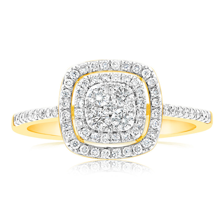 9ct Yellow Gold 1/2 Carat Diamond Ring Set With 73 Brilliant Cut Diamonds