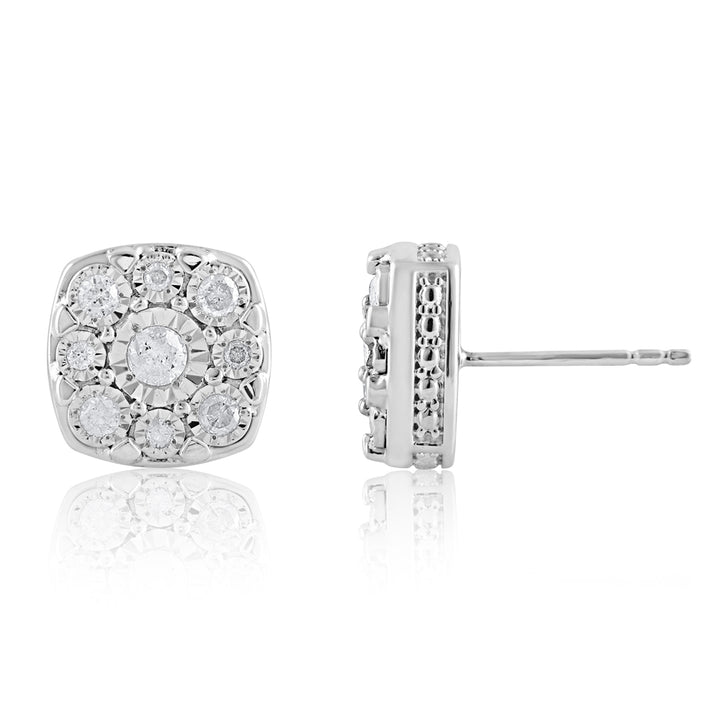 Silver 1/2 Carat Stud Diamond Earrings with 18 Diamonds 10mmx10mm