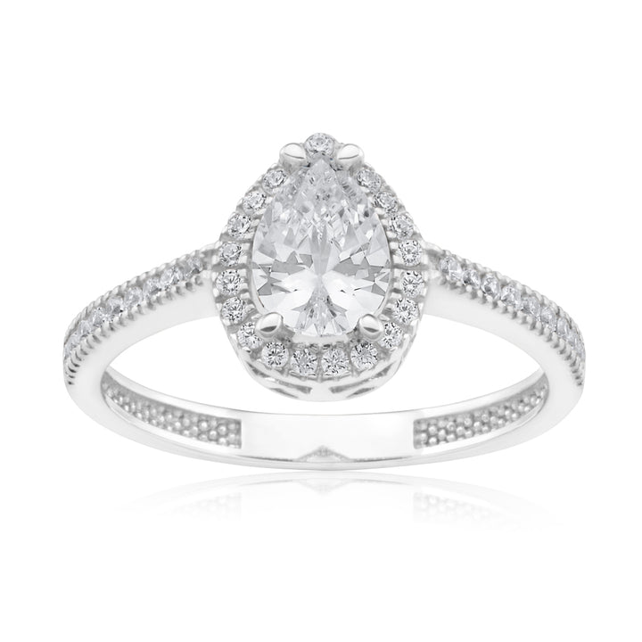 9ct White Gold Zirconia Pear Shaped Halo Ring