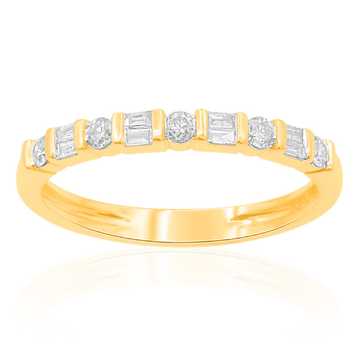 9ct Yellow Gold 1/5 Carat Diamond Ring With 5 Brilliant 8 Baguette Diamonds