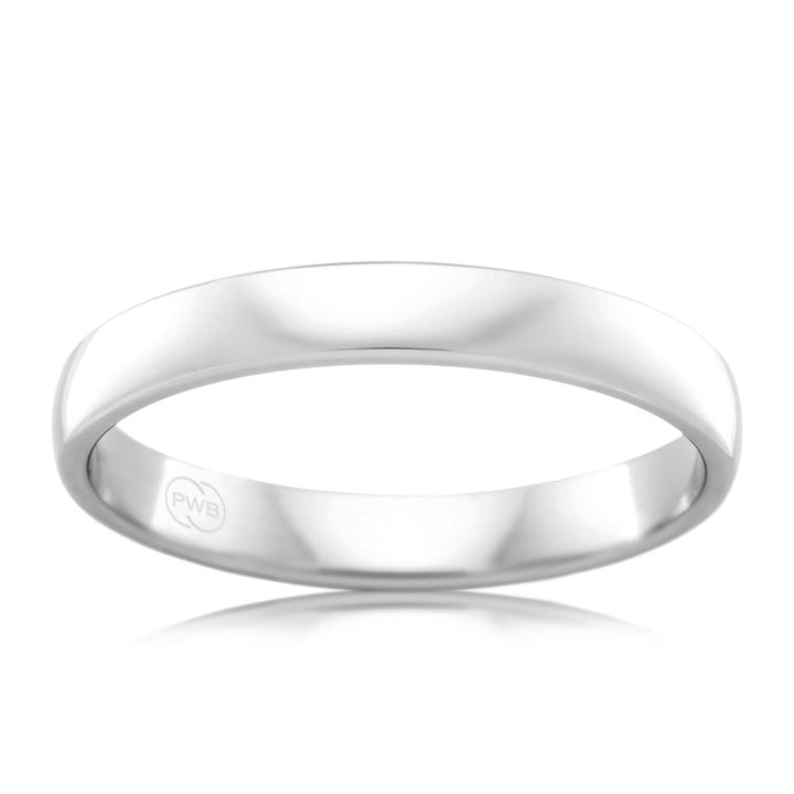 9ct White Gold 3mm Classic Barrel Ring. Size P