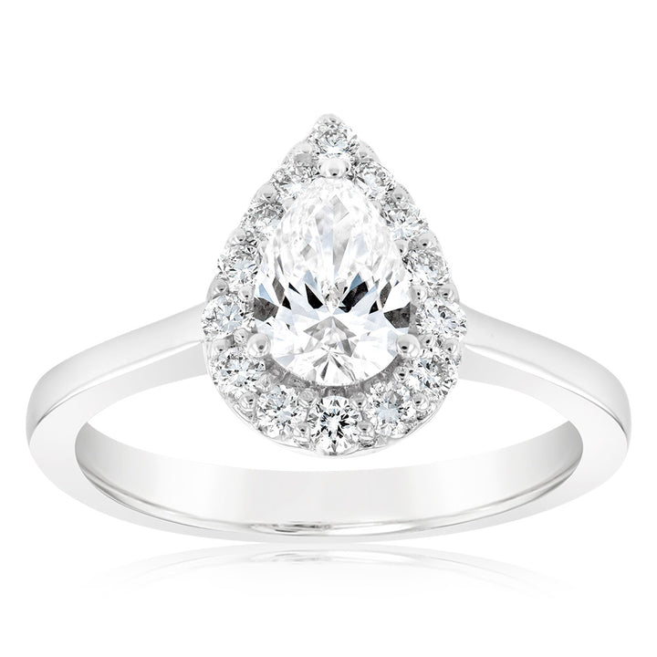 Luminesce Lab Grown 18ct White Gold 1 Carat Diamond Pear Halo Ring