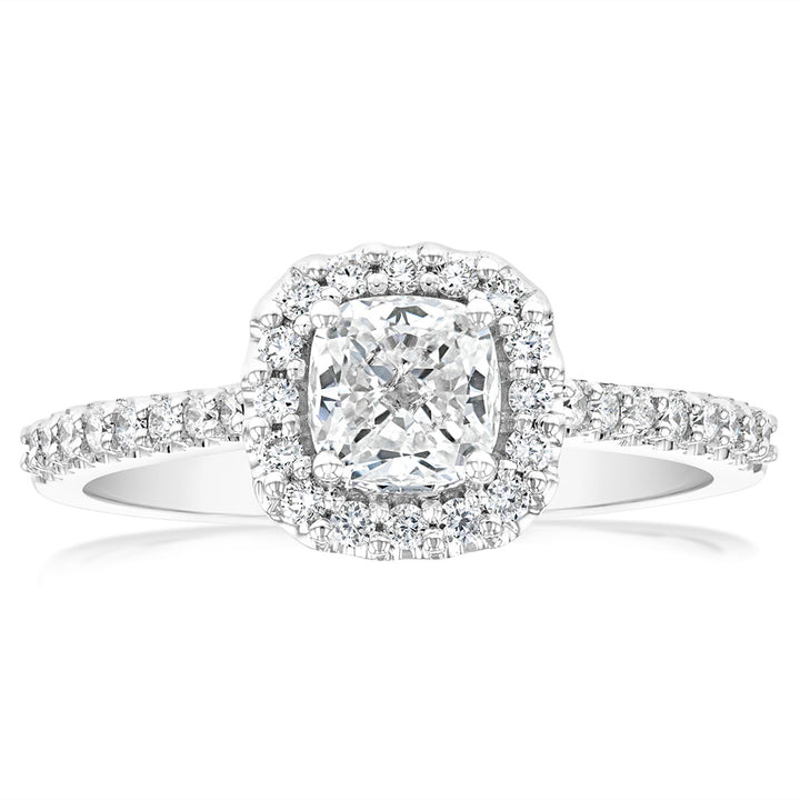Luminesce Lab Grown 18ct White Gold 1 Carat Diamond Cushion Halo Ring