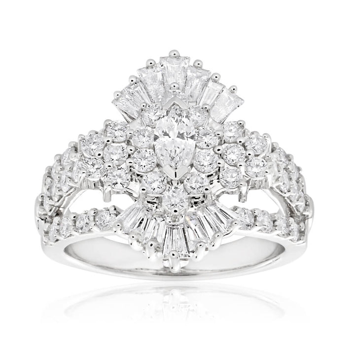 14ct White Gold Ring with 2.00 Carat of Diamonds with Marquise Centre Diamond