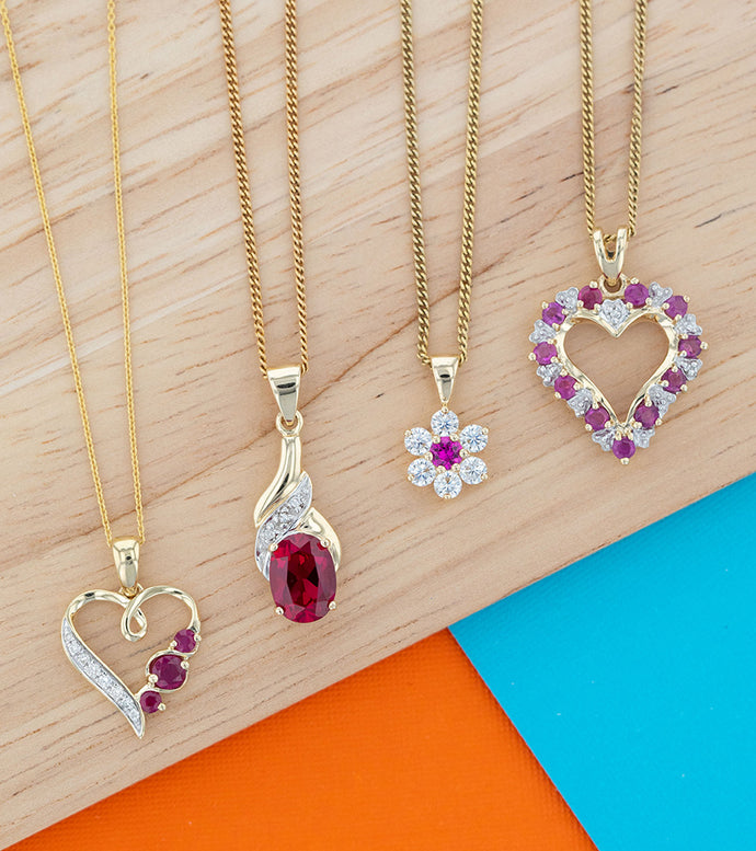 Our collection of stunning ruby jewellery is available in many styles, including ruby rings,ruby necklaces,ruby pendants and ruby earrings. With sterling silver, white gold, rose gold and gold plating options available, whatever your style is, we have something in this ruby gemstone collection for you. From ruby bracelets to ruby accessories and more, discover our favourite ruby jewellery below. This July birthstone is truly stunning.