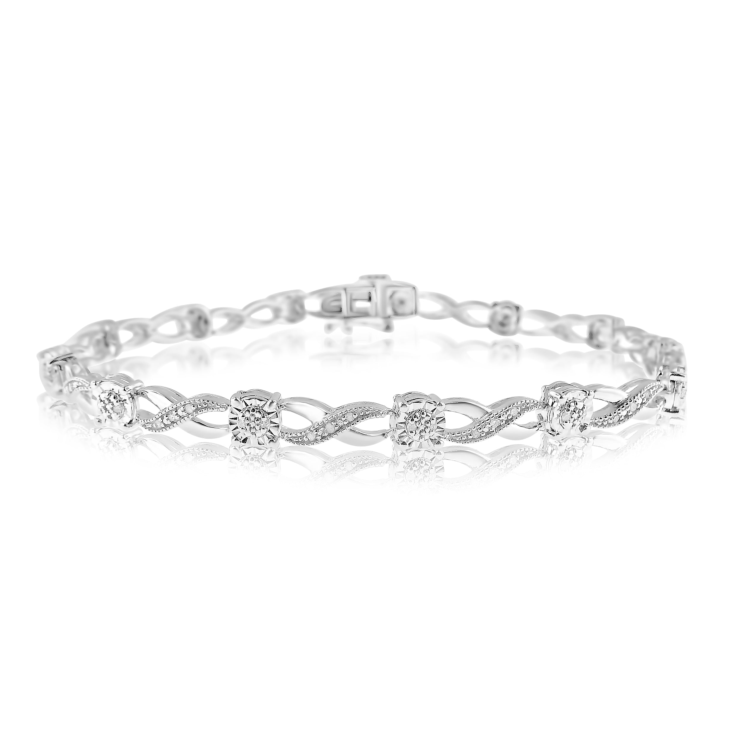 1/5 Carat Diamond Hugs & Kisses 18cm Bracelet in Sterling Silver
