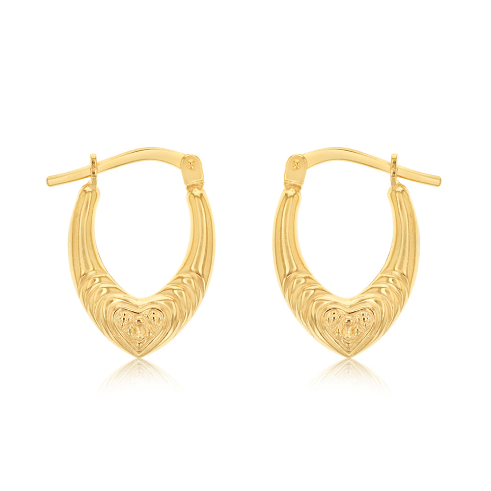 9ct Yellow Gold Silverfilled Fancy Heart Hoop Earrings