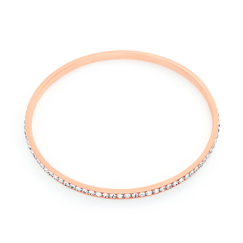 Stainless Steel Rose Gold Plated Crystal 3mmx65mm Bangle
