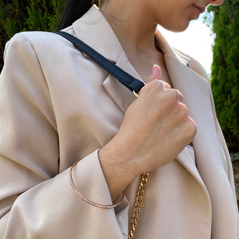 For a unique look, we love this rose gold plated stainless steel crystal bangle. With sparkling crystals, the bangle will add the perfect amount of sparkle to every outfit.