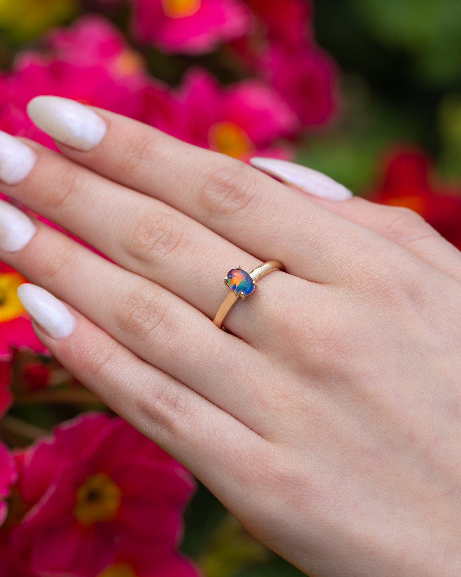 The birthstone for October is Opal. Precious opal is an iridescent layer of mineraloid found in the fissures of rocks like sandstone and basalt. It is also the national gemstone of Australia.