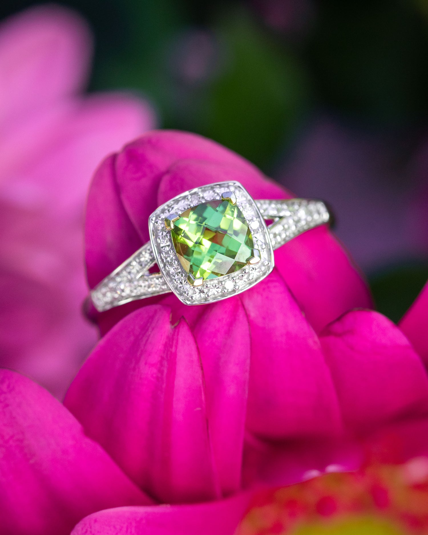 The birthstones for August are Carnelian or Peridot. Peridot is a yellowish-green gemstone symbolising positive energy. Its green colour varies depending on the iron content of the gem.
