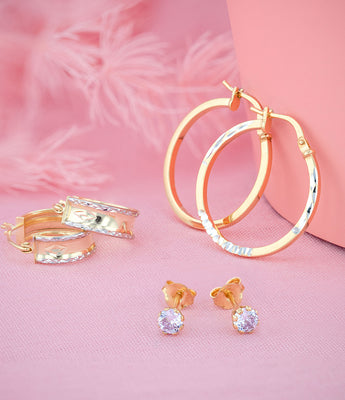 For those who are shopping on a budget, you can achieve the illusion of diamond sparkle for a fraction of the price with diamond cut hoops. A diamond cut or dicut pattern refers to a specific type of faceting technique that is used to create a particular texture on the surface of gold jewellery. This multifaceted effect creates a lovely glitter in the light, giving you that diamond illusion.