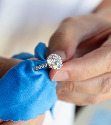 Diamonds are famously durable, but they still benefit from regular care. Give them a gentle clean with warm water, a touch of mild soap and a soft brush - especially around the setting where oils can build up. Rinse well and dry with a polishing cloth. Check that stones remain secure, and store separately from other jewellery to prevent scratches.