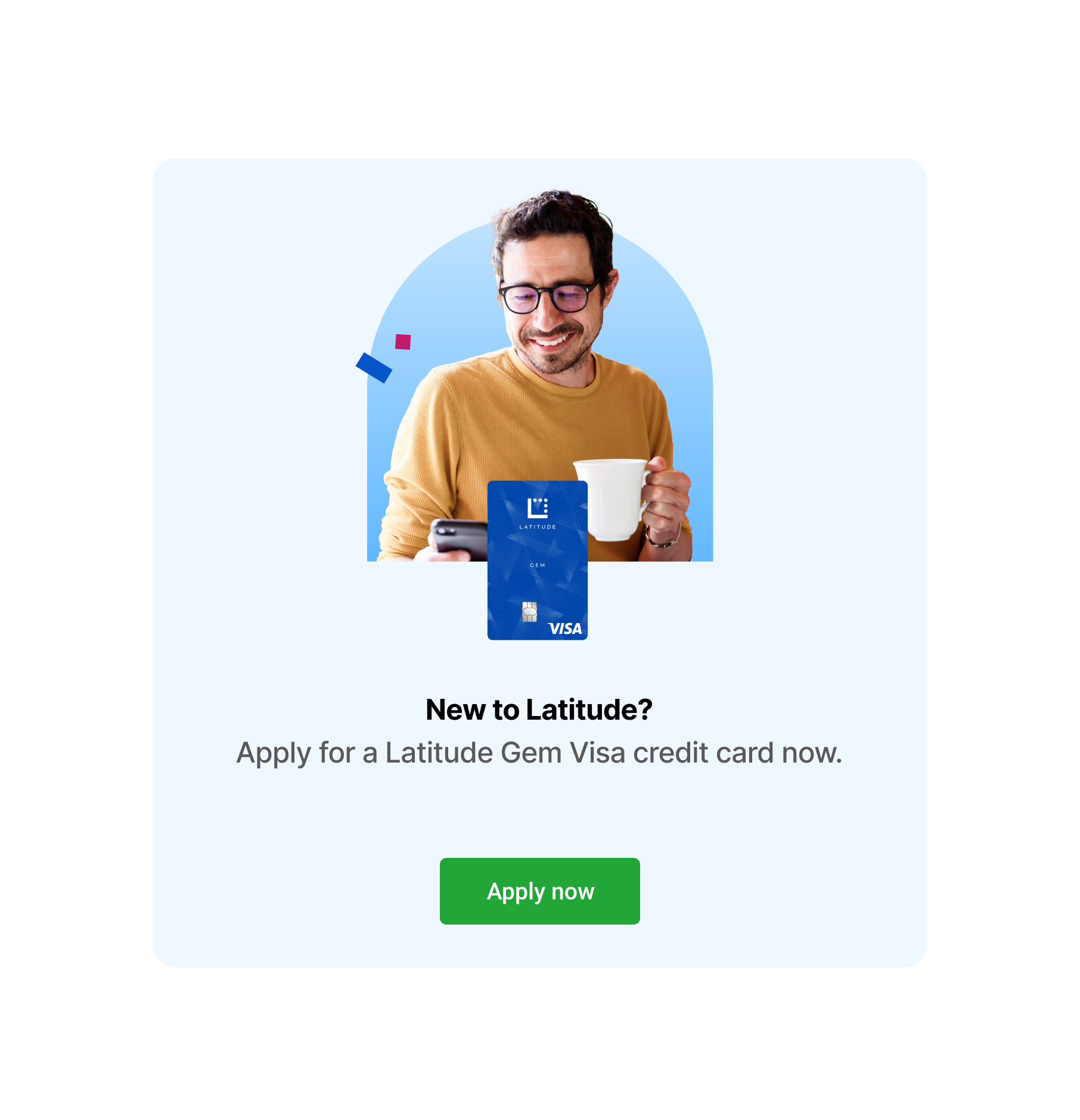 Latitude Gem Visa credit card. Credit provided by Latitude Finance Australia