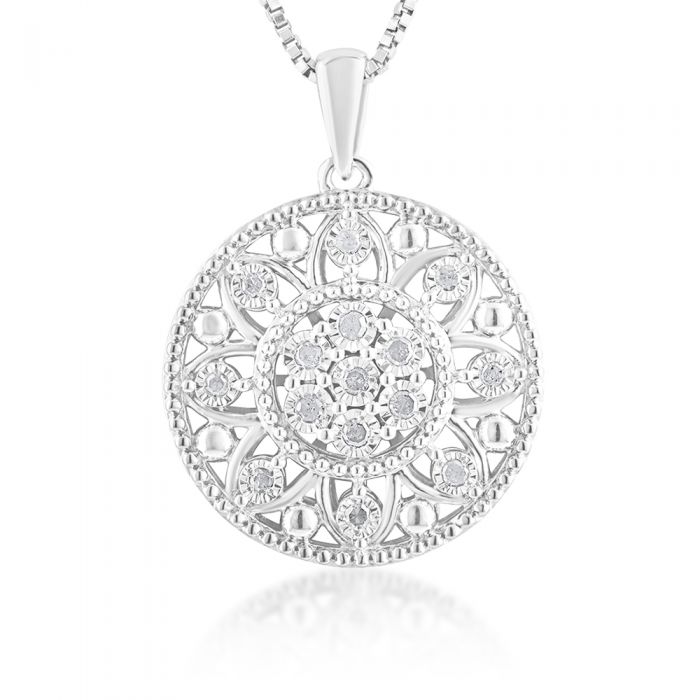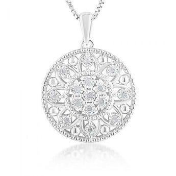 0.10 Carat Diamond Filigree Pendant in Sterling Silver