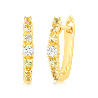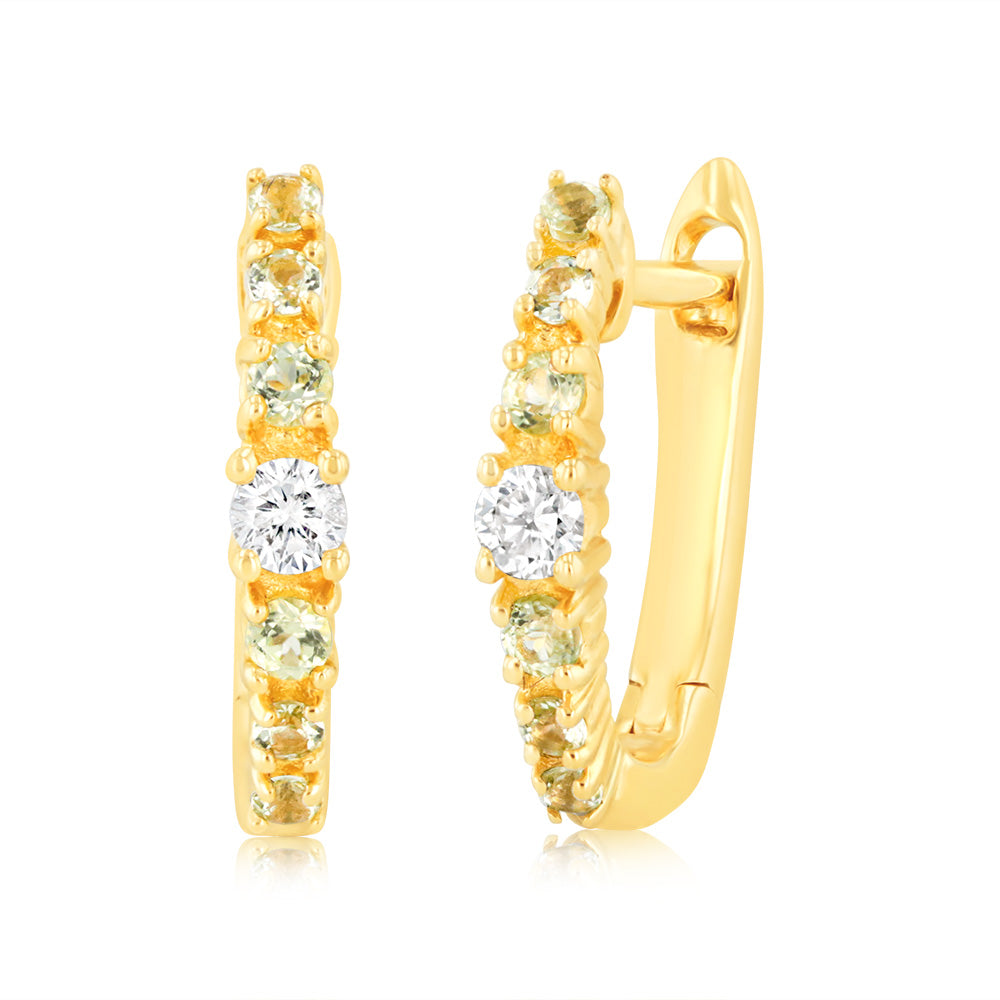 0.15 Carat Peridot and Diamond Hoop Earrings in 9ct Yellow Gold