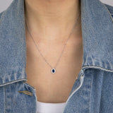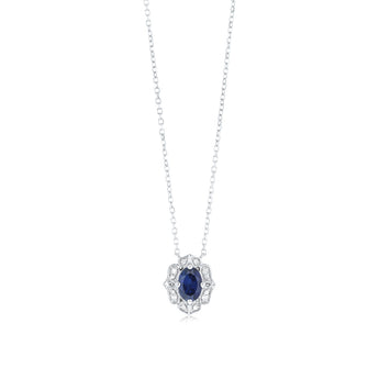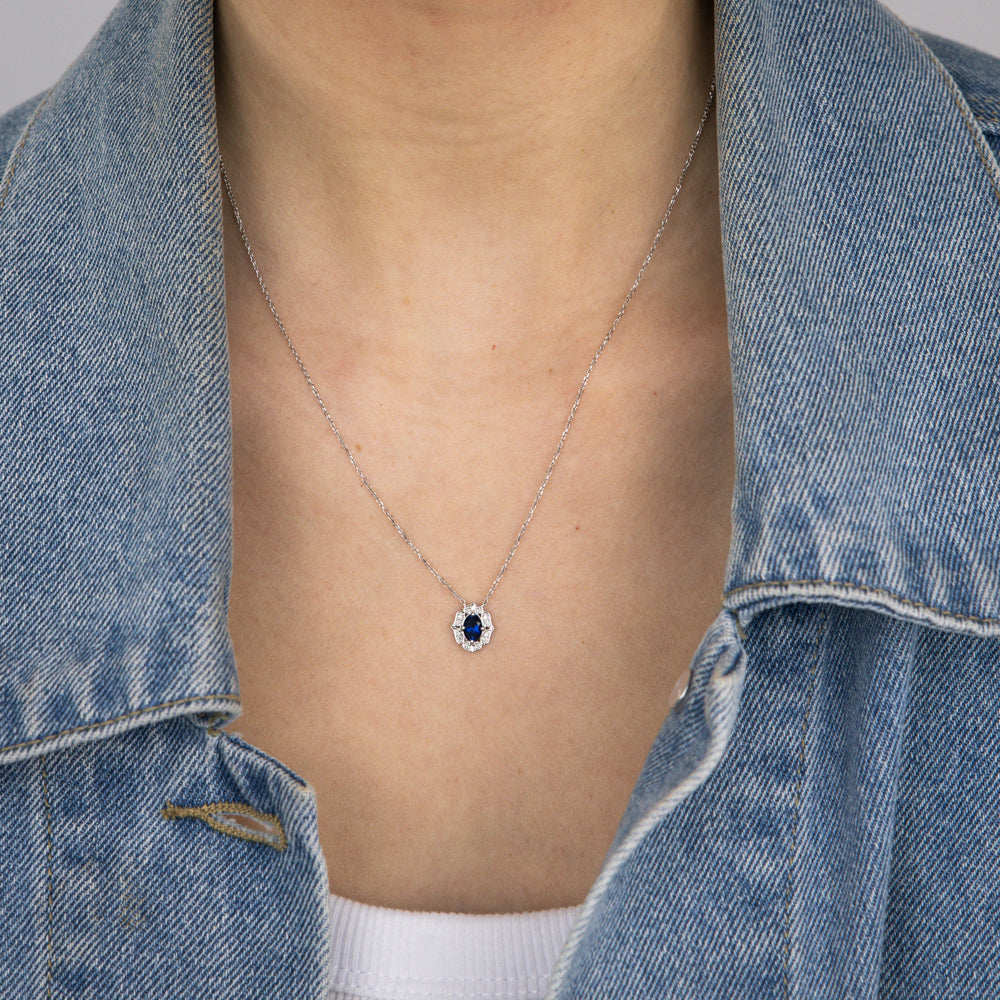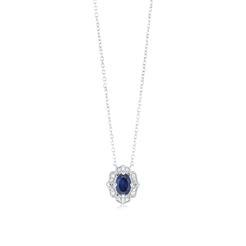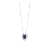 0.50 Carat Created Blue Sapphire Oval and Diamond Pendant with 45cm Chain in 9ct White Gold