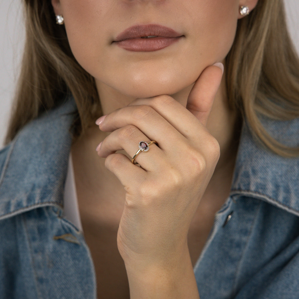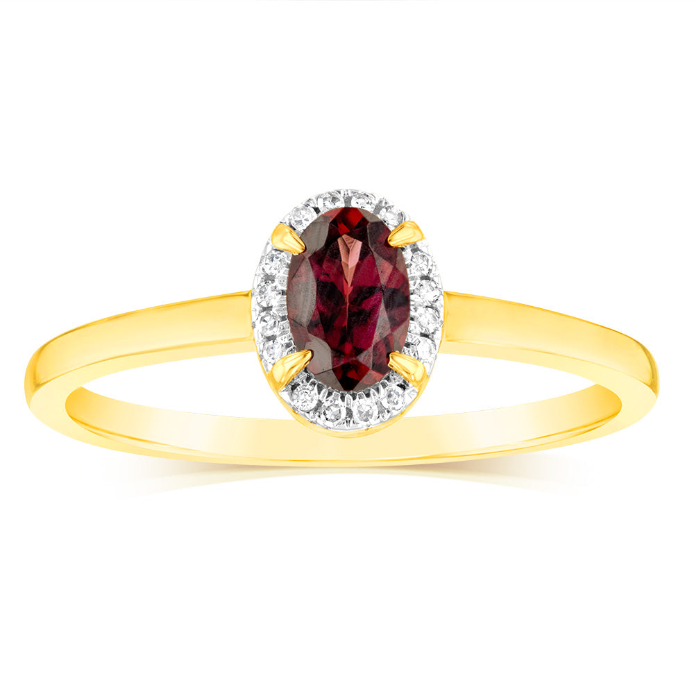 0.56 Carat Red Garnet and Diamond Ring in 9ct Yellow Gold