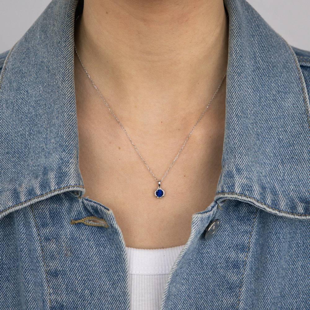 0.67 Carat Created Sapphire and Diamond Pendant with 45cm Chain in 9ct White Gold