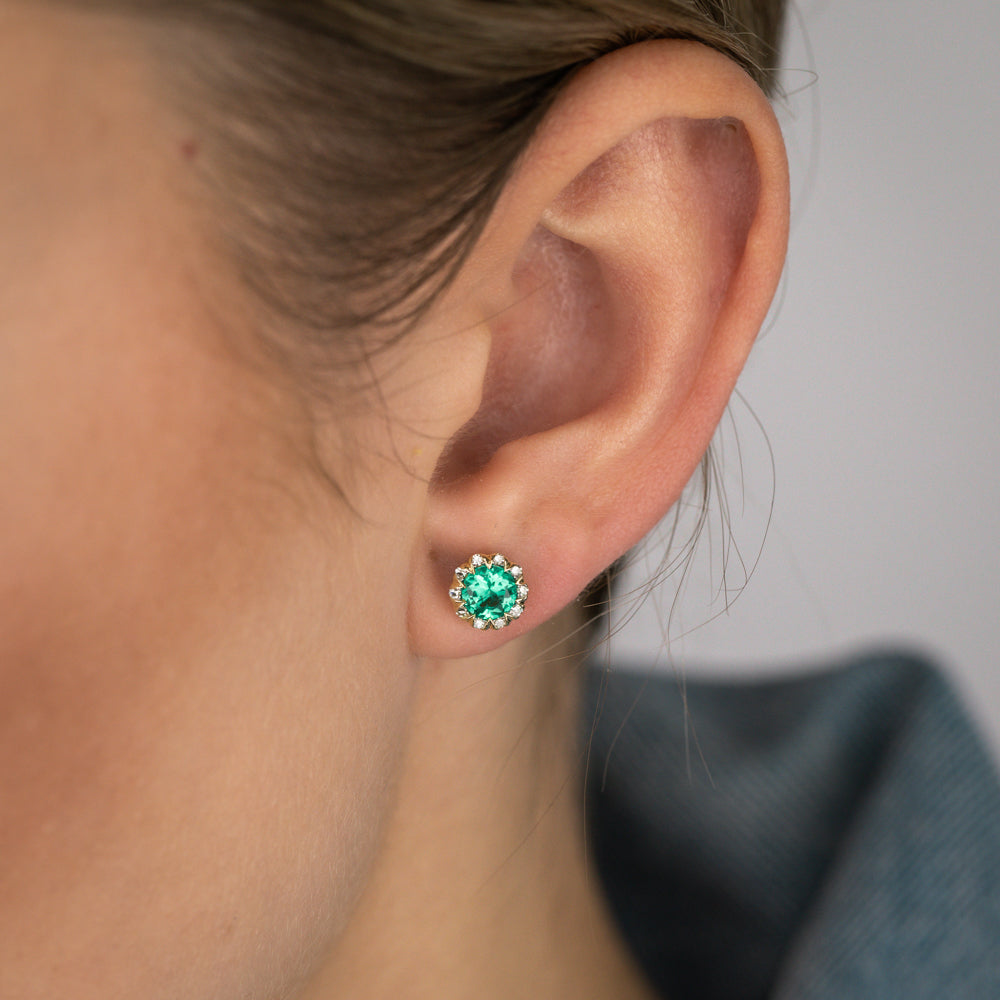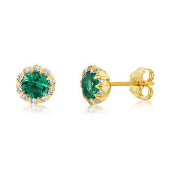 0.84 Carat Created Emerald and Diamond Stud Earrings in 9ct Yellow Gold