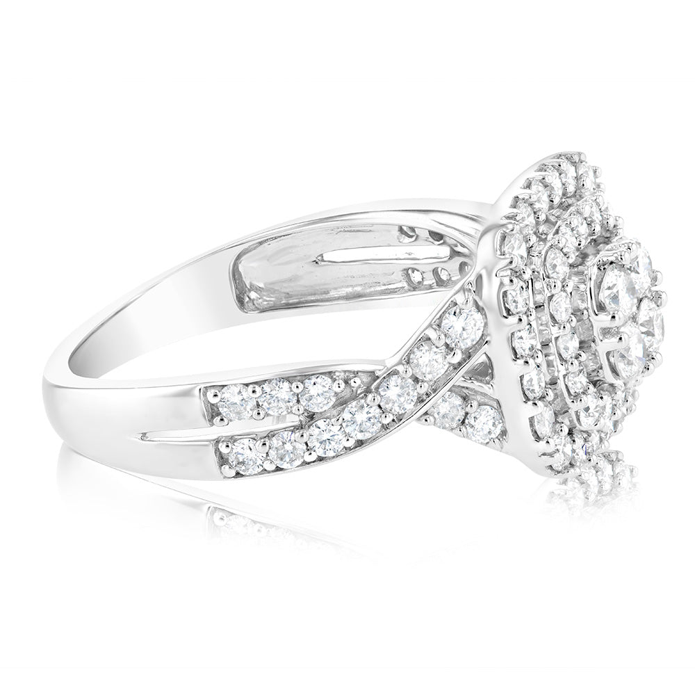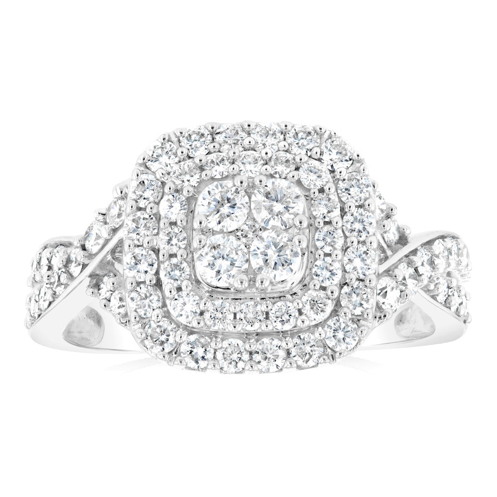 0.95 Carat Diamond Cluster Cushion Ring in 10ct White Gold