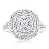 0.95 Carat Diamond Cluster Cushion Ring in 10ct White Gold