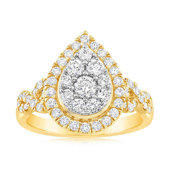 0.95 Carat Diamond Cluster Pear Shape Ring in 14ct Yellow Gold