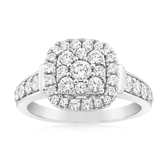 0.95 Carat Diamond Cushion Cluster Ring in 14ct White Gold