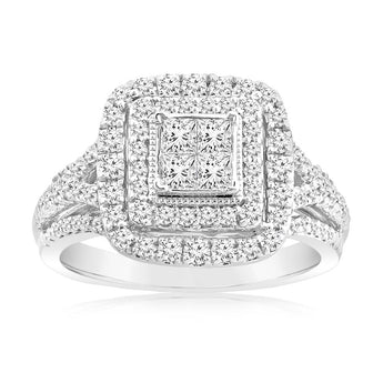 0.95 Carat Diamond Cushion Cluster Ring in 14ct White Gold