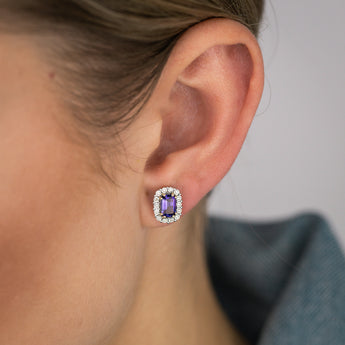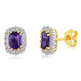 1.08 Carat Amethyst and Diamond Stud Earrings in 9ct Yellow Gold