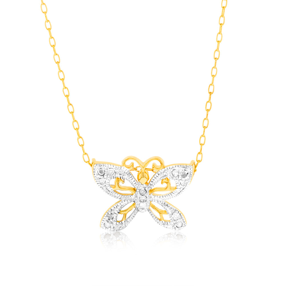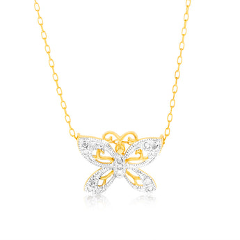 1/10 Carat Diamond Butterfly Pendant in Gold Plated Silver
