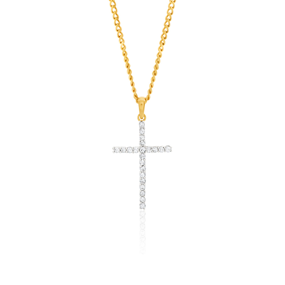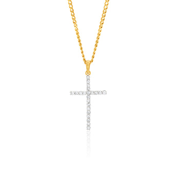 1/10 Carat Diamond Cross Pendant Set with 22 Brilliant Diamonds in 9ct Yellow Gold