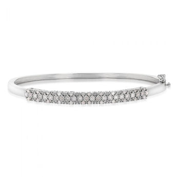 1/2 Carat Diamond 3 Row 50x60mm Hinge Bangle in Sterling Silver