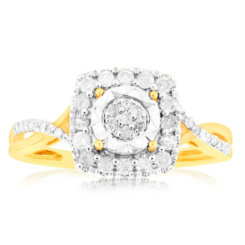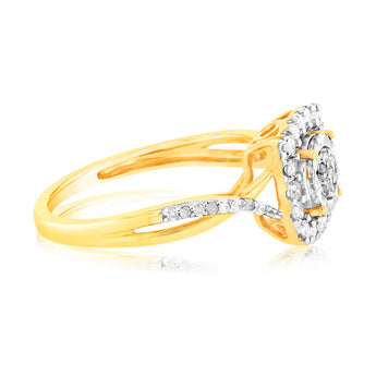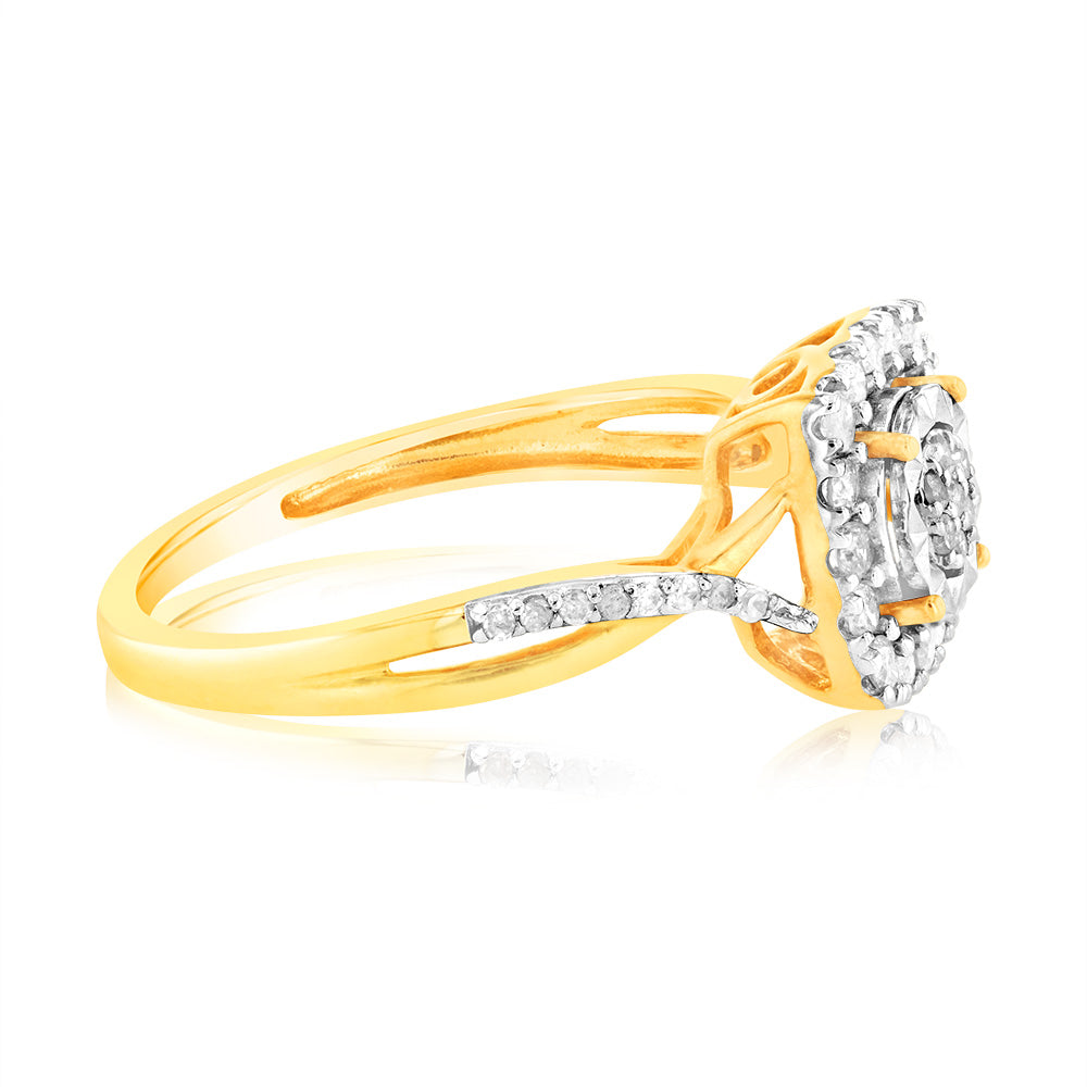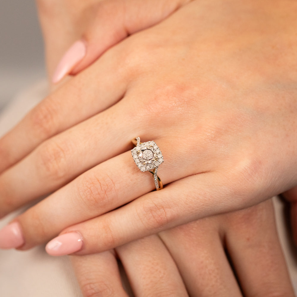 1/3 Carat Diamond Cushion Shaped Ring in 10ct Yellow Gold