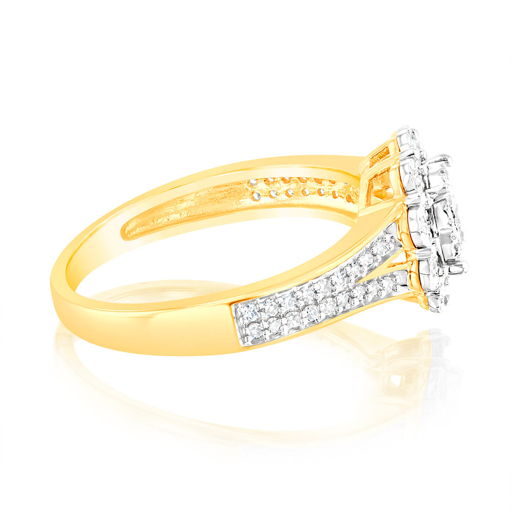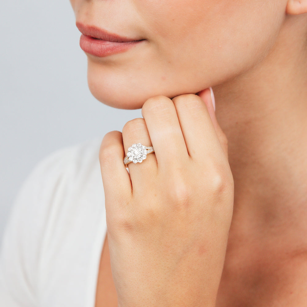 1/3 Carat Diamond Halo Ring with Split Shank in 9ct Yellow Gold