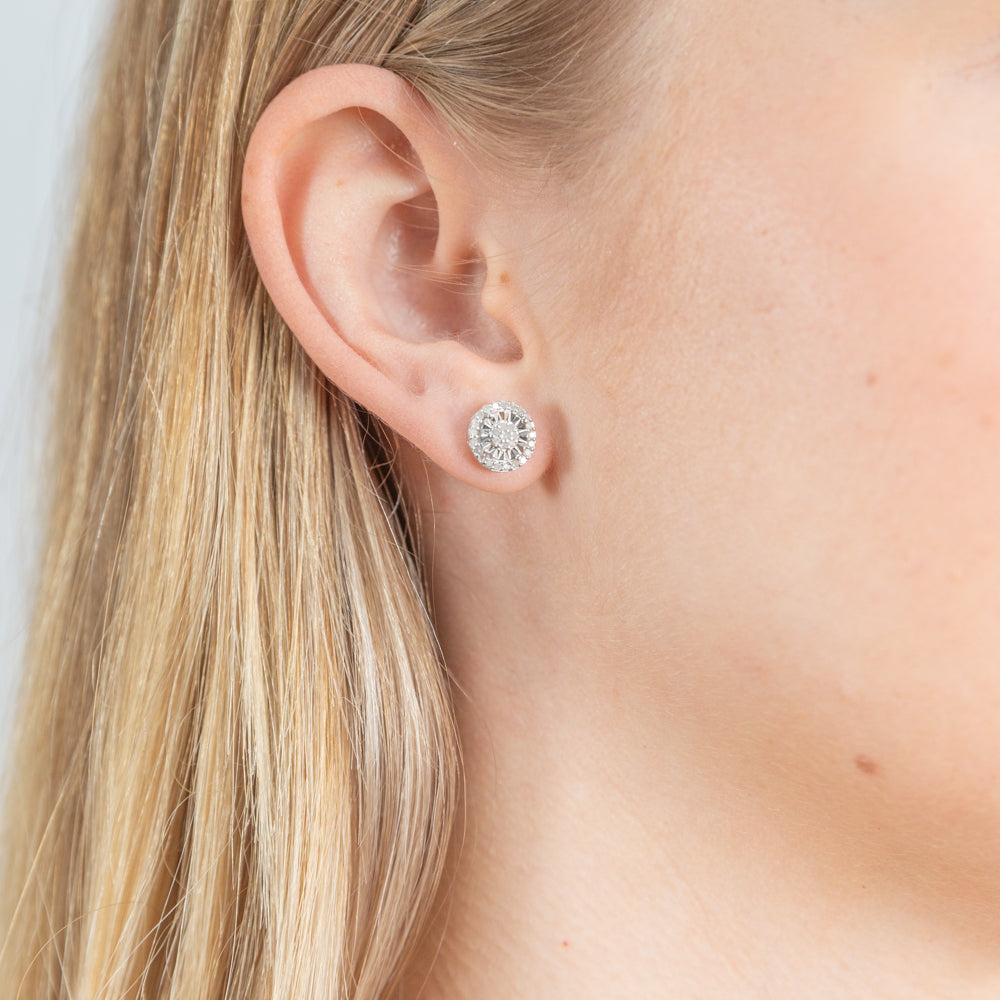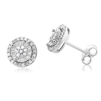 1/4 Carat Diamond Stud Earrings set with 18 Brilliant Diamonds in Sterling Silver