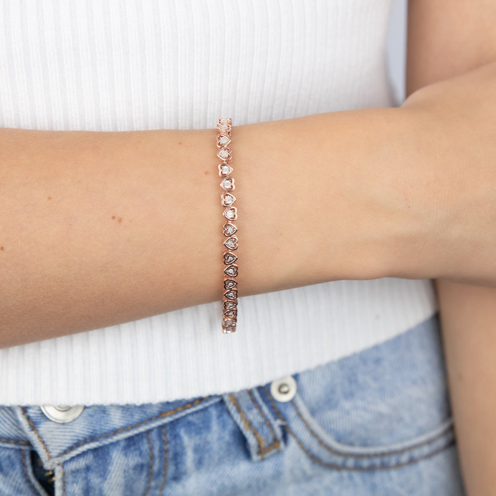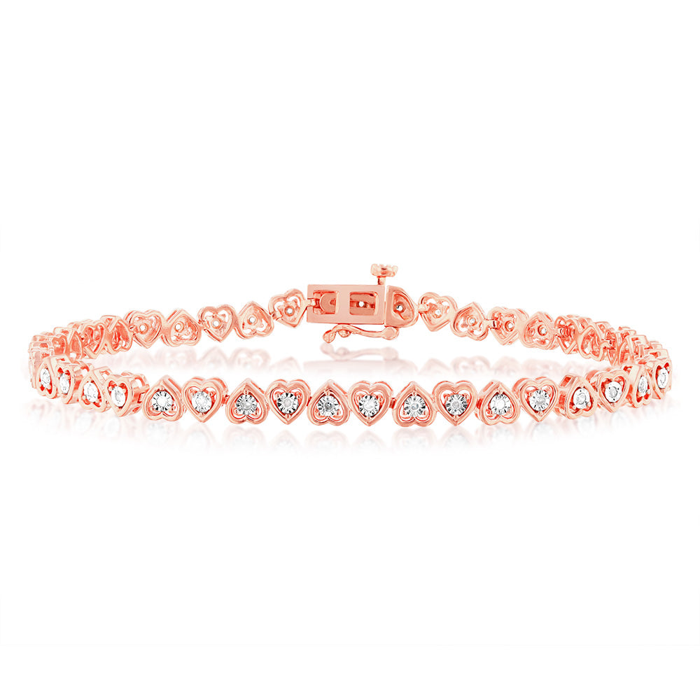 1/5 Carat Diamond Heart 18cm Bracelet in Rose Gold Plated Silver