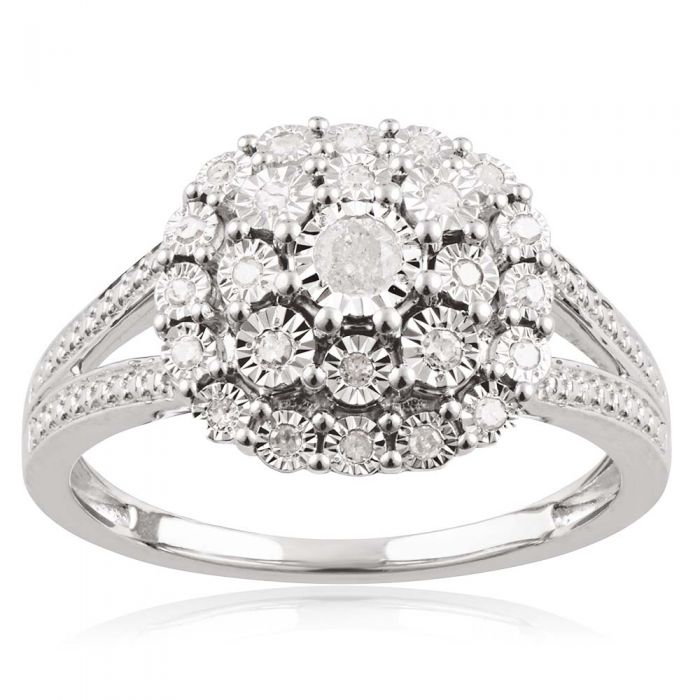 1/5 Carat Diamond Ring with 25 Brilliant Diamonds in Sterling Silver