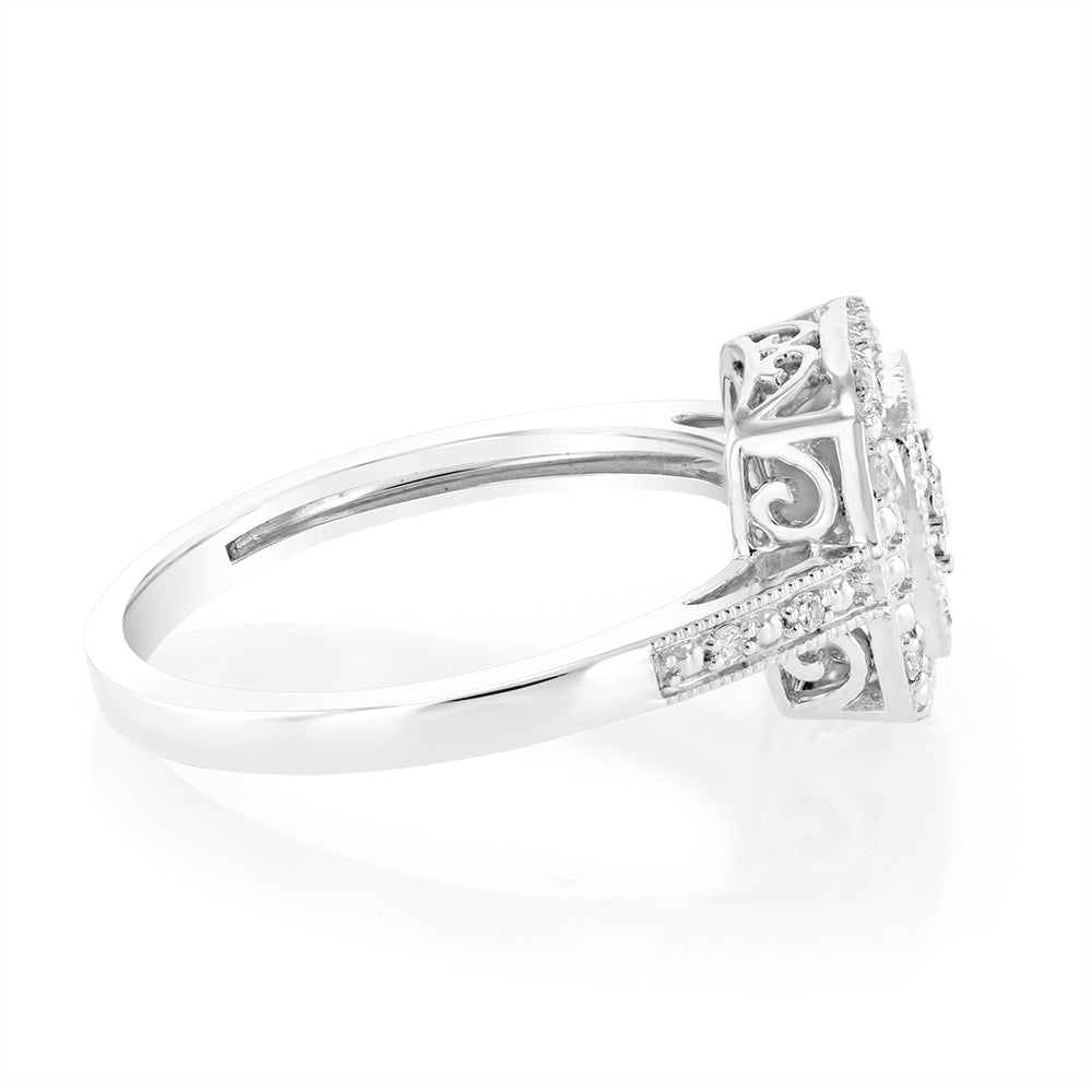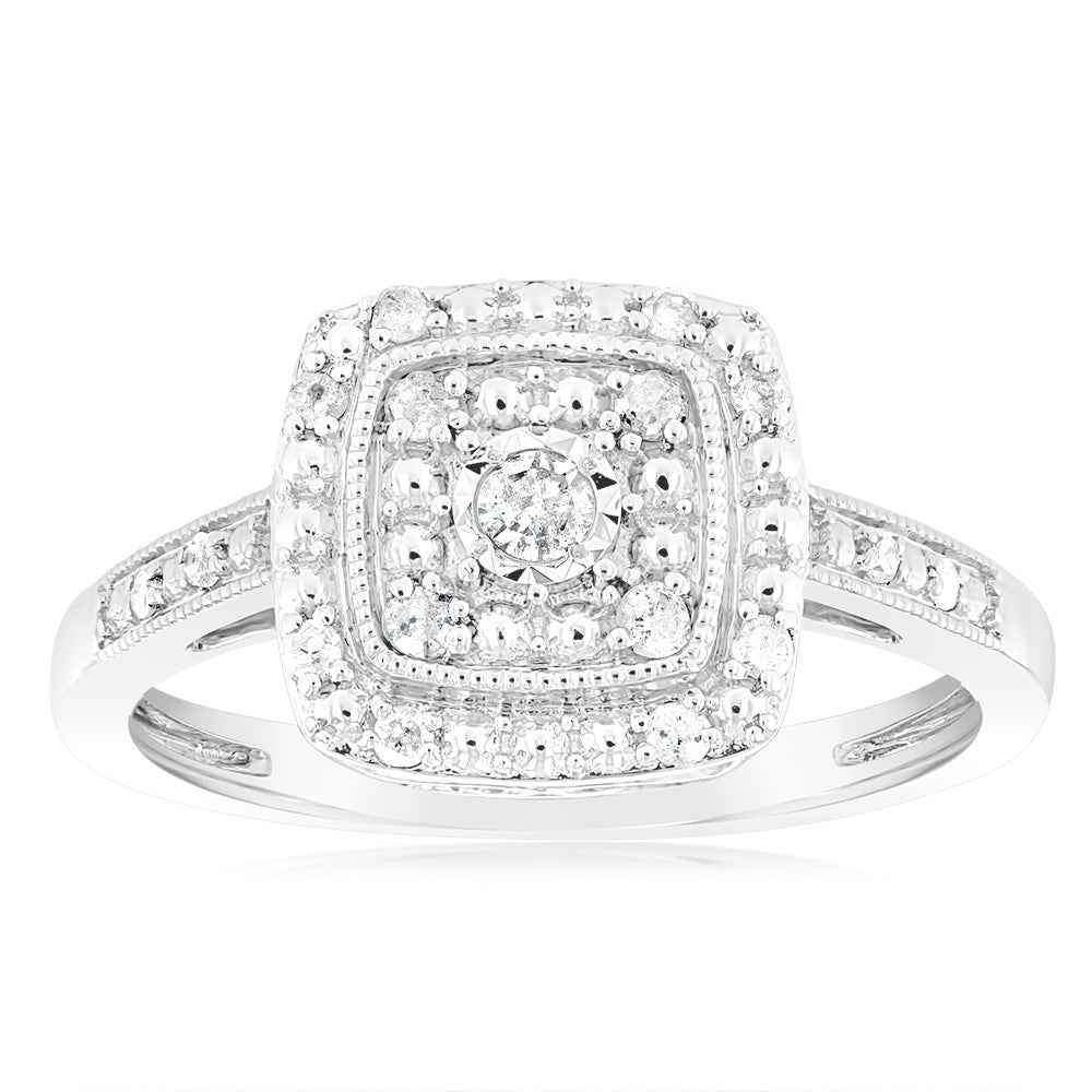 1/6 Carat Diamond Cushion Ring in Sterling Silver