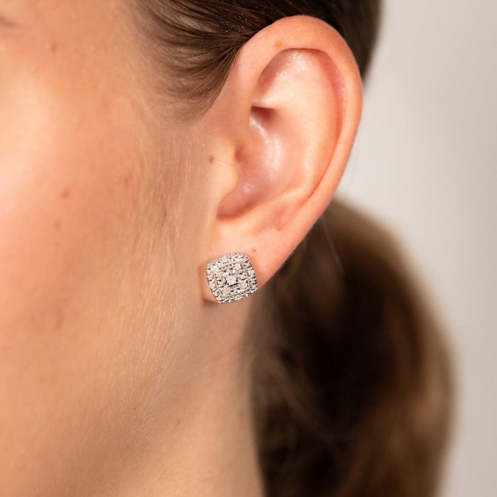 1/6 Carat Diamond Cushion Studs in Sterling Silver