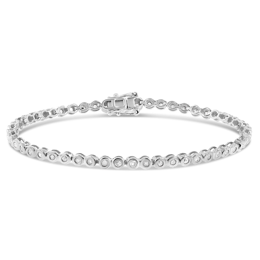 1 Carat Diamond Bezel Set Tennis Bracelet With 53 Diamonds 18cm in Sterling Silver