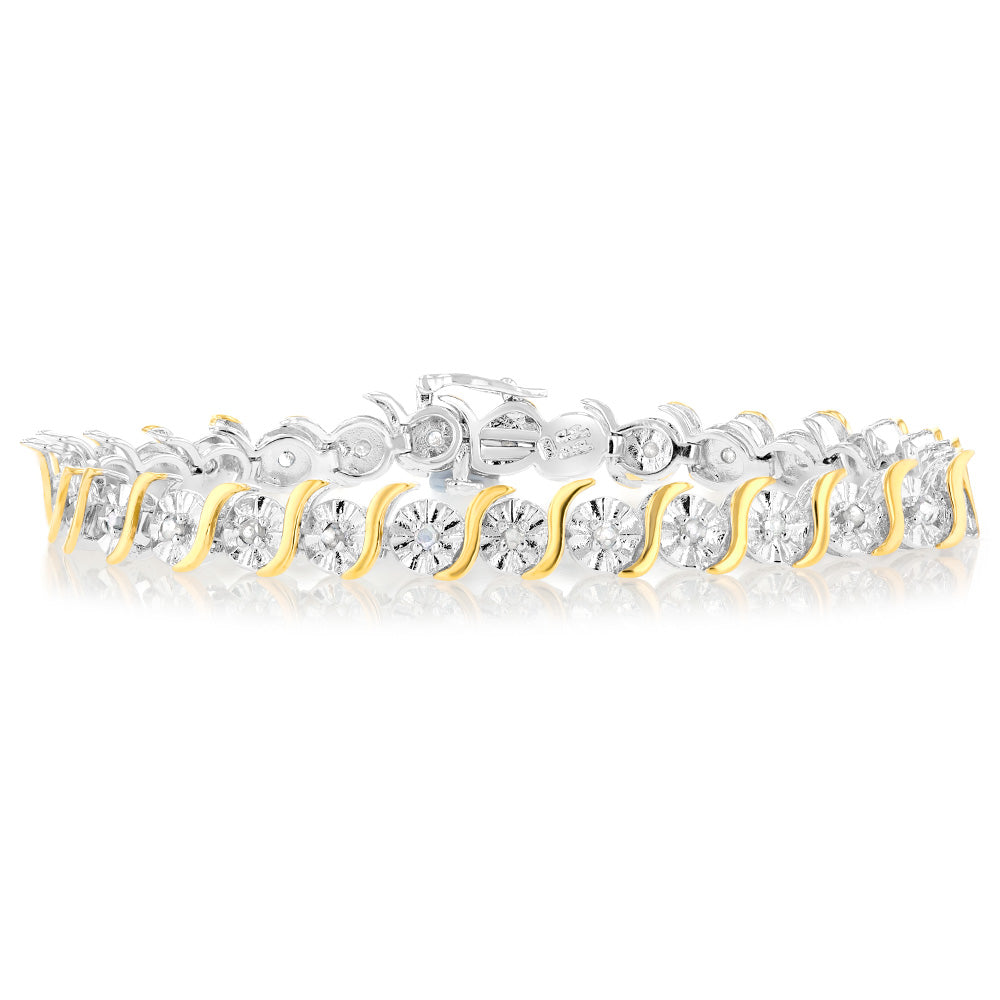 1 Carat Diamond Bracelet in Two Toned Sterling Silver