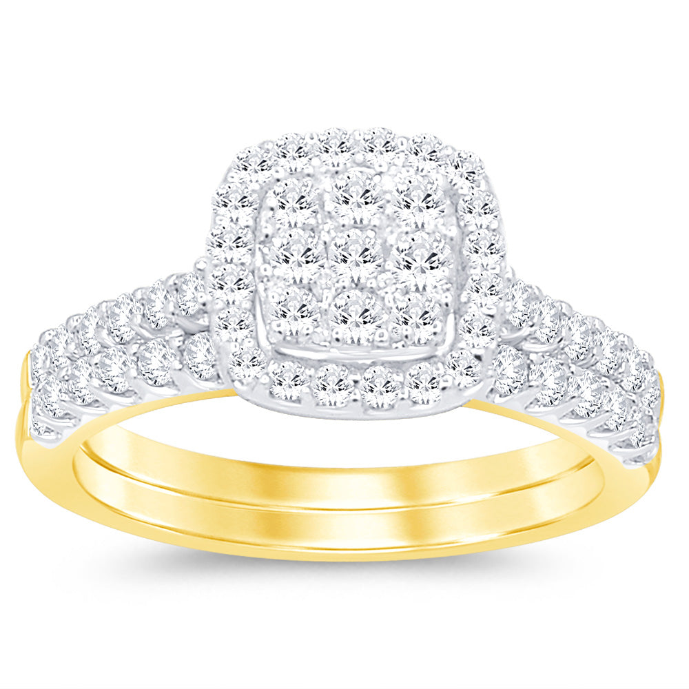 1 Carat Diamond Cushion Shaped Bridal Set in 9ct Yellow Gold
