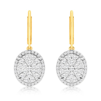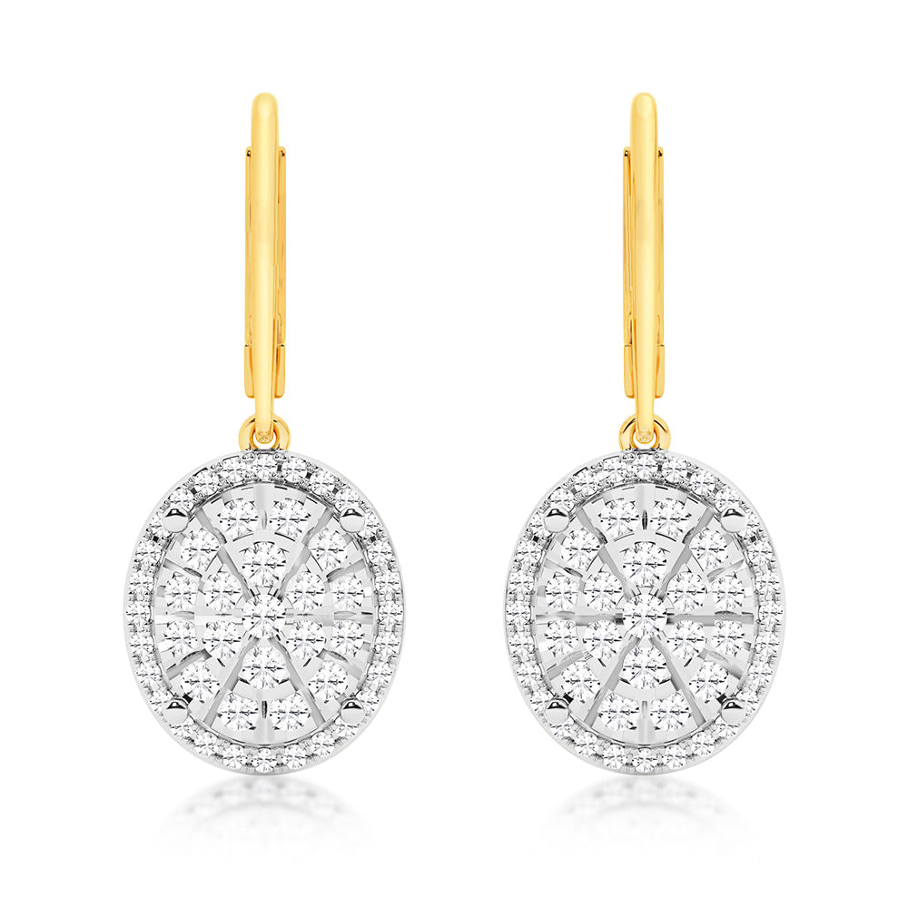 1 Carat Diamond Oval Shaped Drop Earrings in 9ct Yellow Gold & Sterling Silver
