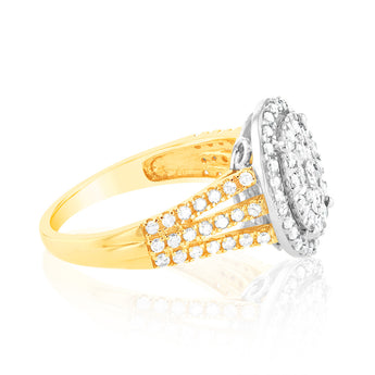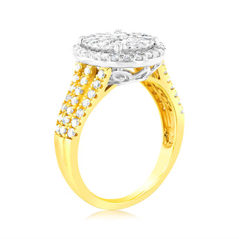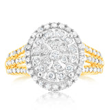 1 Carat Diamond Oval Shaped Ring in 9ct Yellow Gold & Sterling Silver