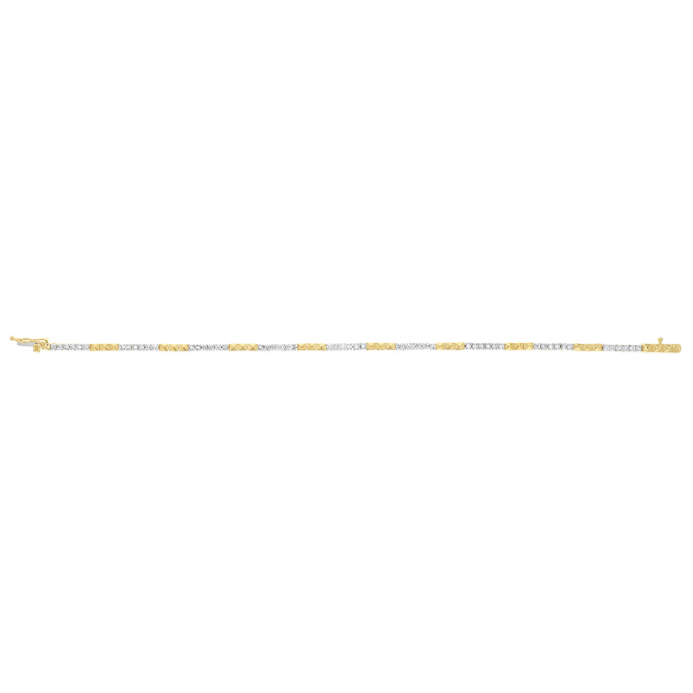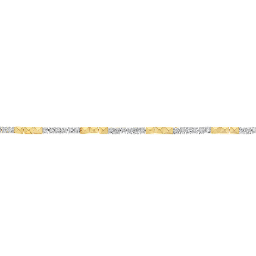 1 Carat Diamond Tennis 2 tones Bracelet 17.5 cm in 9ct Yellow Gold