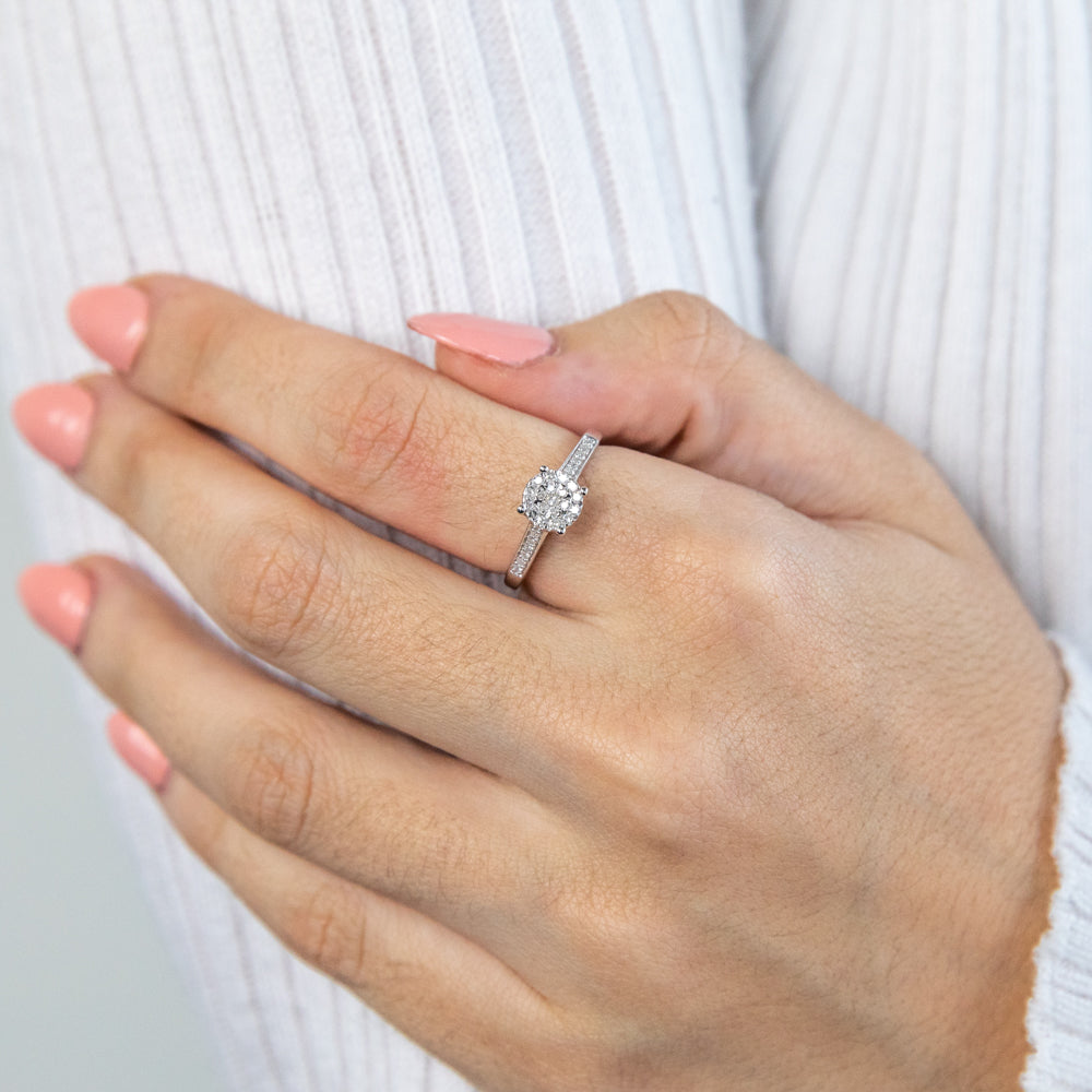 "1 CARAT LOOK" Diamond Ring 0.15 Carat with Brilliant Cut Diamonds in Sterling Silver